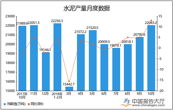 以上就是2018年1-10月全國水泥產量統計,數據來源于國家統計局及中國報告大廳數據中心整理發布,僅供參考。