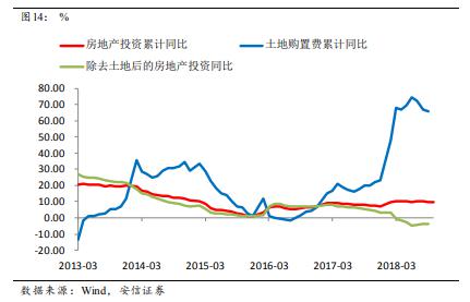第三個解釋或許更為重要。2018年以來市場一致的認識是,房地產企業加大了土地購置,土地購置費大幅增長;另一方面,今年的房地產投資數據一直在10%左右波動,因此倒算出來的包括建安等在內的其他部分投資同比出現負增長。所以,市場一度相信剔除土地后的實際投資并不樂觀。
