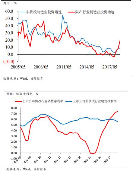 目前的關鍵問題是,這個回升將持續到什么時候。我們認為,這可能要等到供改行業的銷售凈利率回到相對正常的水平。目前來看,這個過程還將延續一段時間。因此,即使明年的非供改行業的制造業投資出現下降,供改行業的制造業投資依然保持高水平,形成對沖,導致制造業投資的下滑幅度可能并不會太大。