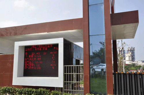 走進淮海中聯水泥有限公司,首先看到的是大門西側旁一個近5平方米大小的LED在線監測數據電子公示牌,同步顯示顆粒物、二氧化硫、氮氧化物、日期、風向、天氣預警等信息,生產區域內各類監測數據一目了然?! ?/p>