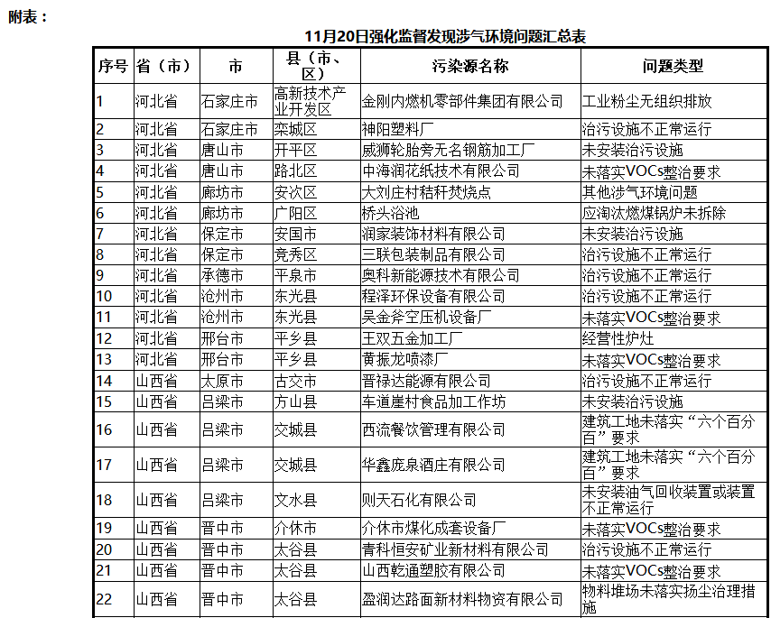 四、工業(yè)企業(yè)未安裝大氣污染防治設施問題20個。