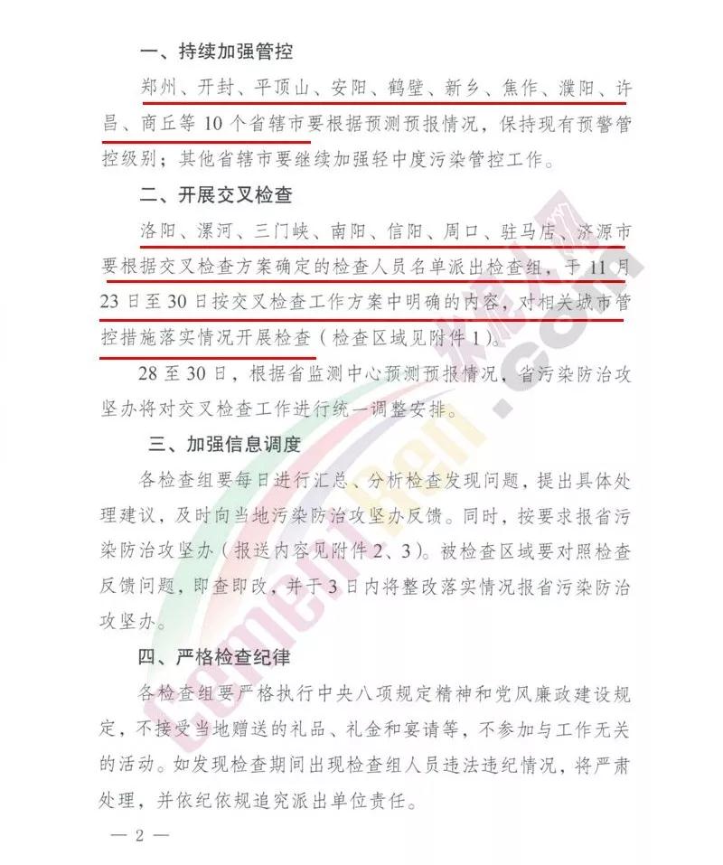 為確保各地各項管理措施落到實處,有效減輕污染天氣影響,根據《河南省2018-2019年秋冬季重污染天氣應對交叉檢查工作方案》,就加強重污染天氣應急管控及開展第一輪交叉檢查工作。