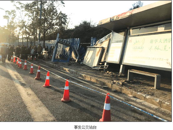 事發地點位于安順花鳥市場公交站臺,是一座港灣式公交站臺,現場有一些血跡,同時,地面撒滿了大量水果。
