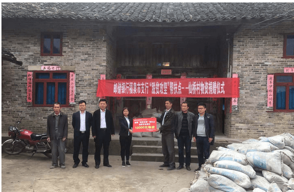 仙橋村,是貧困村,也是郵儲銀行福泉市支行的幫扶點,全村有935戶,其中建檔立卡貧困戶192戶,共727人。今年7月,郵儲銀行福泉市支行的工作人員到村里進行走訪時,了解到該村在政府的幫助下將于11月開展道路硬化工程。為了能給該村道理硬化工程添一把力,經過與鄉政府及村支兩委商量,郵儲銀行福泉市支行決定為仙橋村捐贈1萬元的水泥。