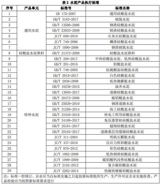 按企業標準、地方標準等生產的水泥產品,屬于本細則列出的相關國家標準和行業標準的范疇或適用范圍的,按相應的國家標準或行業標準取證。