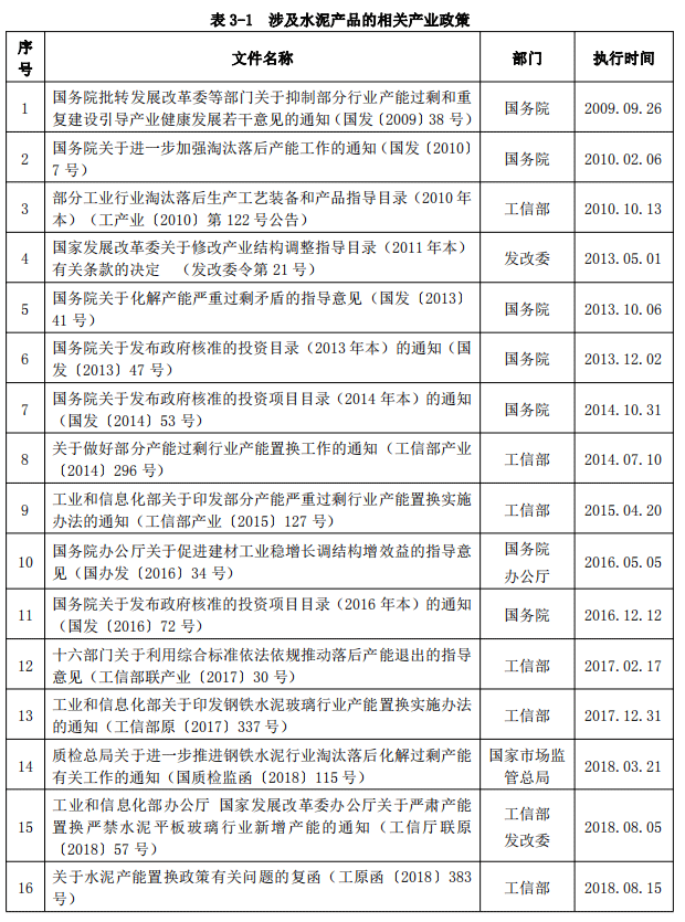 涉及水泥產品的相關產業政策見表3-1。