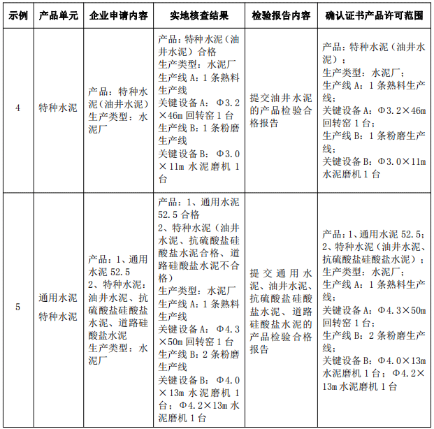 第十六條 水泥產品生產許可范圍的判定原則及示例: