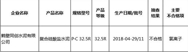 水泥產品質量監督抽查結果