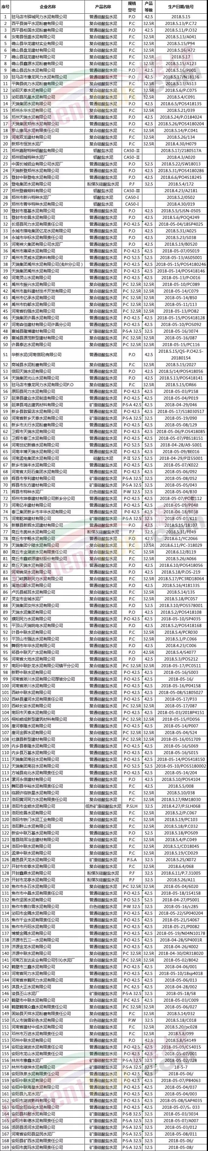 2018年第2批水泥產品河南省