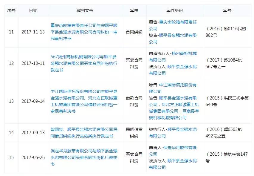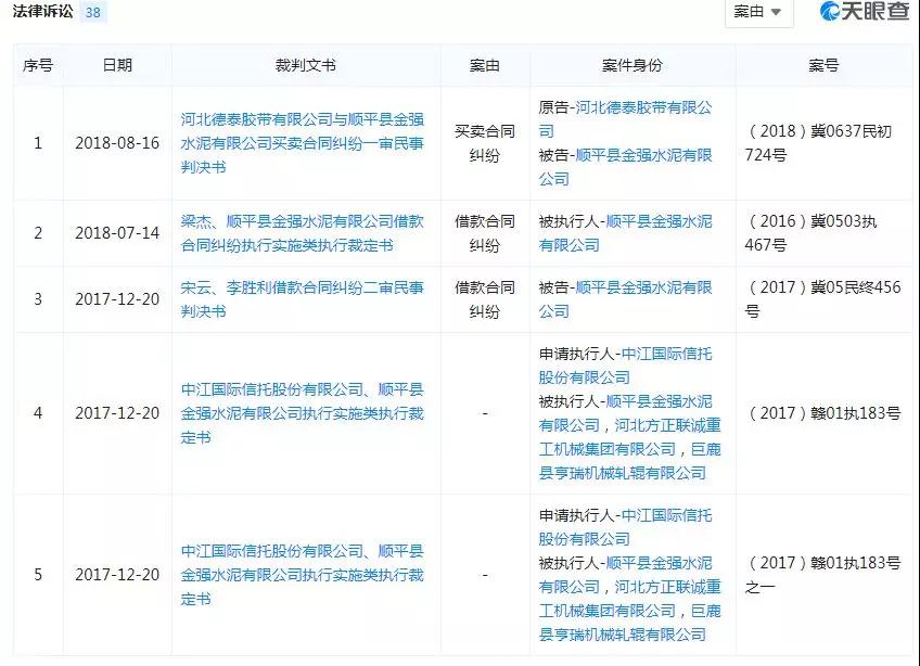金強水泥投產后,似乎其發展之路并不平坦,曲折坎坷,先是2015年爆出股權轉讓京蘭水泥,后是法律訴訟案件不斷,官司纏身!相關資料顯示僅2017-2018就涉及15起法律訴訟。