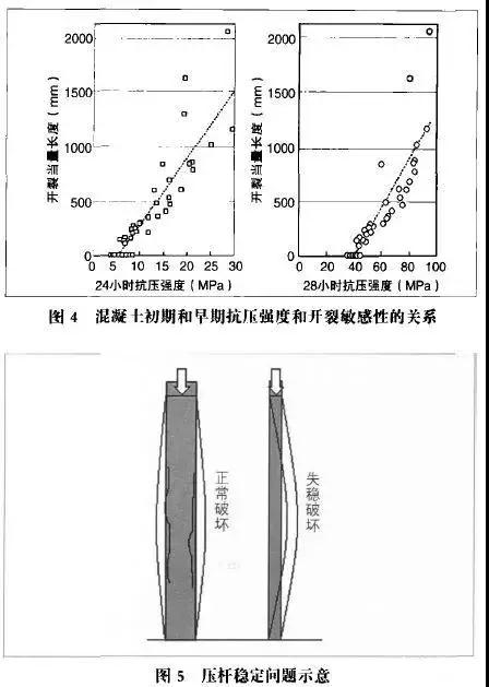 3)凡是提高早期強(qiáng)度的措施對(duì)混凝土后期性能都會(huì)有損害,這已是國(guó)內(nèi)外專家的共識(shí)。前RILEM主席、德國(guó)混凝土專家RupertSpringenschmid證明控制混凝土12小時(shí)抗壓強(qiáng)度不超過(guò)6MPa,就可以避免混凝土的早期開(kāi)裂;我國(guó)混凝土專家黃士元經(jīng)過(guò)試驗(yàn)得出結(jié)論:可用混凝土24小時(shí)抗壓強(qiáng)度不超過(guò)12MPa來(lái)控制混凝土的早期開(kāi)裂(見(jiàn)圖4)。
