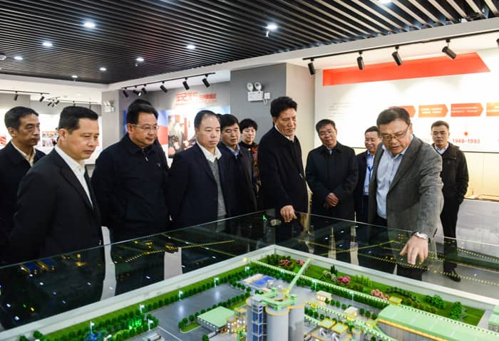 代表團一行首先參觀了華新展廳,了解了華新的企業(yè)文化、發(fā)展歷程、輝煌業(yè)績以及轉型升級高質量發(fā)展等方面的成就。在參觀過程中,洛桑江村仔細了解了華新水泥在綠色環(huán)保、新型建材等方面的創(chuàng)新發(fā)展成績,并給予高度評價。