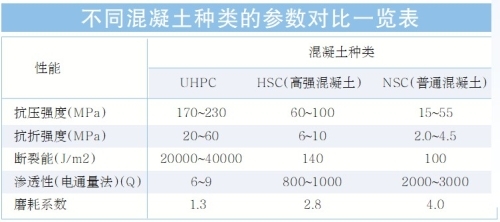 UHPC以超高的強(qiáng)度、韌性和耐久性為特征,可顯著改善傳統(tǒng)鋼筋混凝土的不足,在本質(zhì)上是鋼和混凝土共同融合的新模式。UHPC不同于傳統(tǒng)的高強(qiáng)混凝土(HSC)和鋼纖維混凝土(SFRC),也不是傳統(tǒng)意義“高性能混凝土(HPC)”的高強(qiáng)化,而是性能指標(biāo)明確的新品種水泥基結(jié)構(gòu)工程材料。