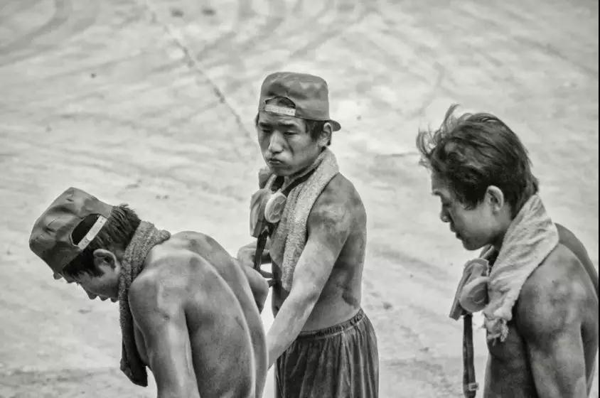 ▲2005年8月,從一個個裸身上的粉塵和口鼻上的防護罩,你就會想象到勞動強度和環境對他們的侵蝕。