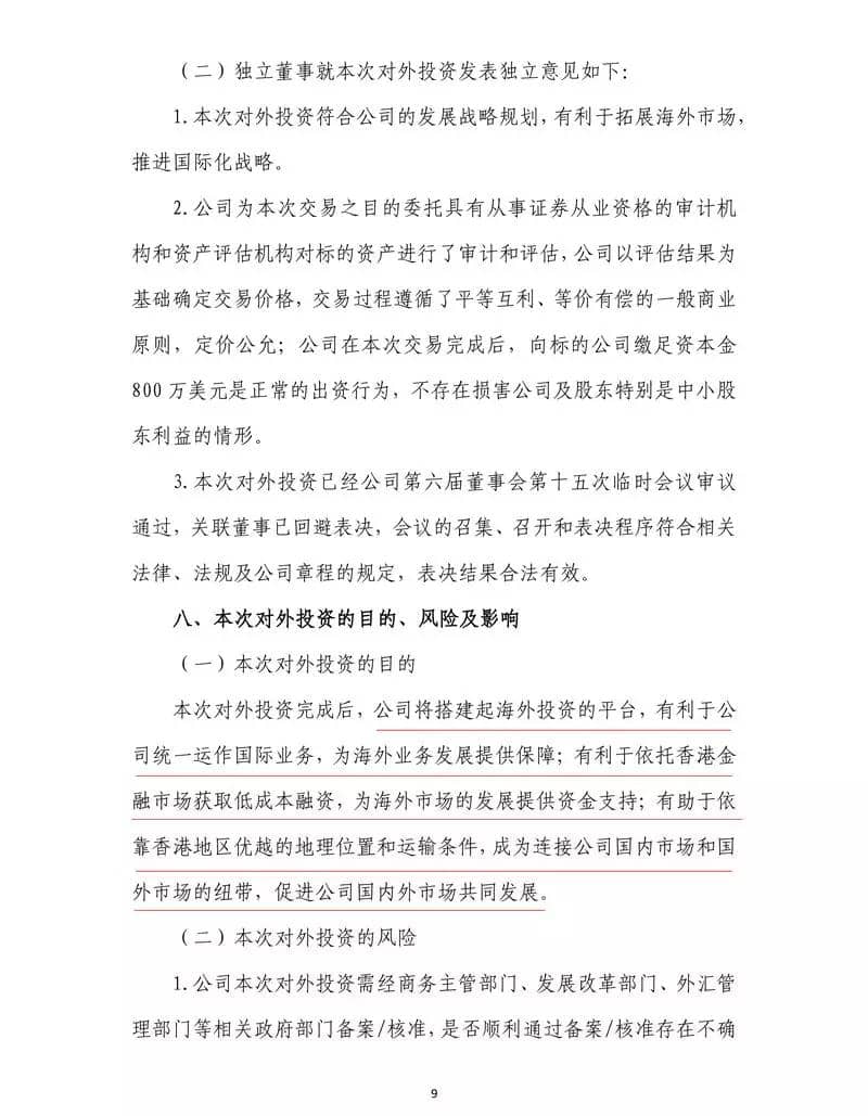 標的公司注冊資本800萬美元,尚未繳納到位,本次交易完成后,公司擬將標的公司名稱變更為北新控股有限公司,并擬向標的公司繳足資本金800萬美元。公告原文如下: