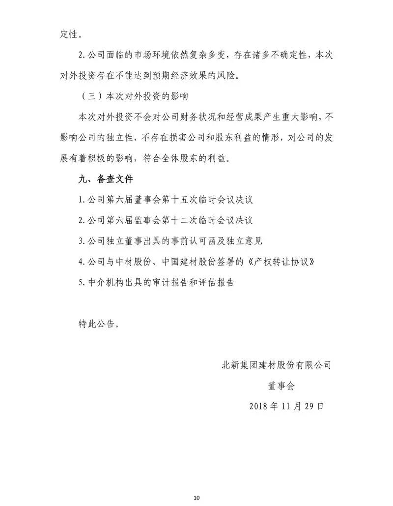 北新建材于11月30日發布關于公司收購境外公司暨關聯交易公告。