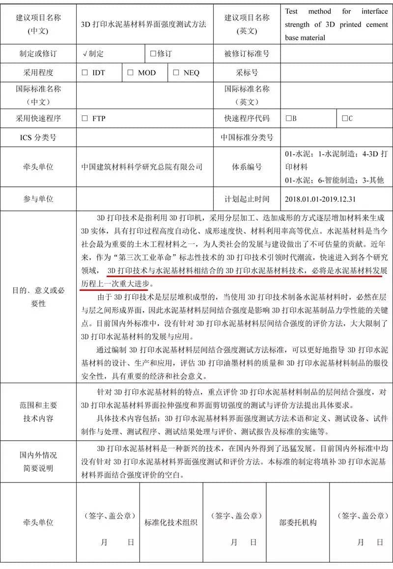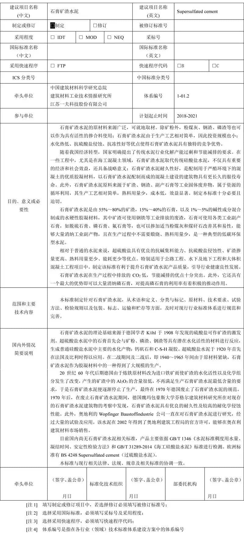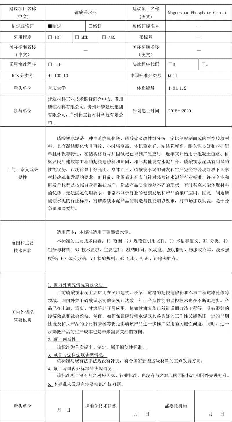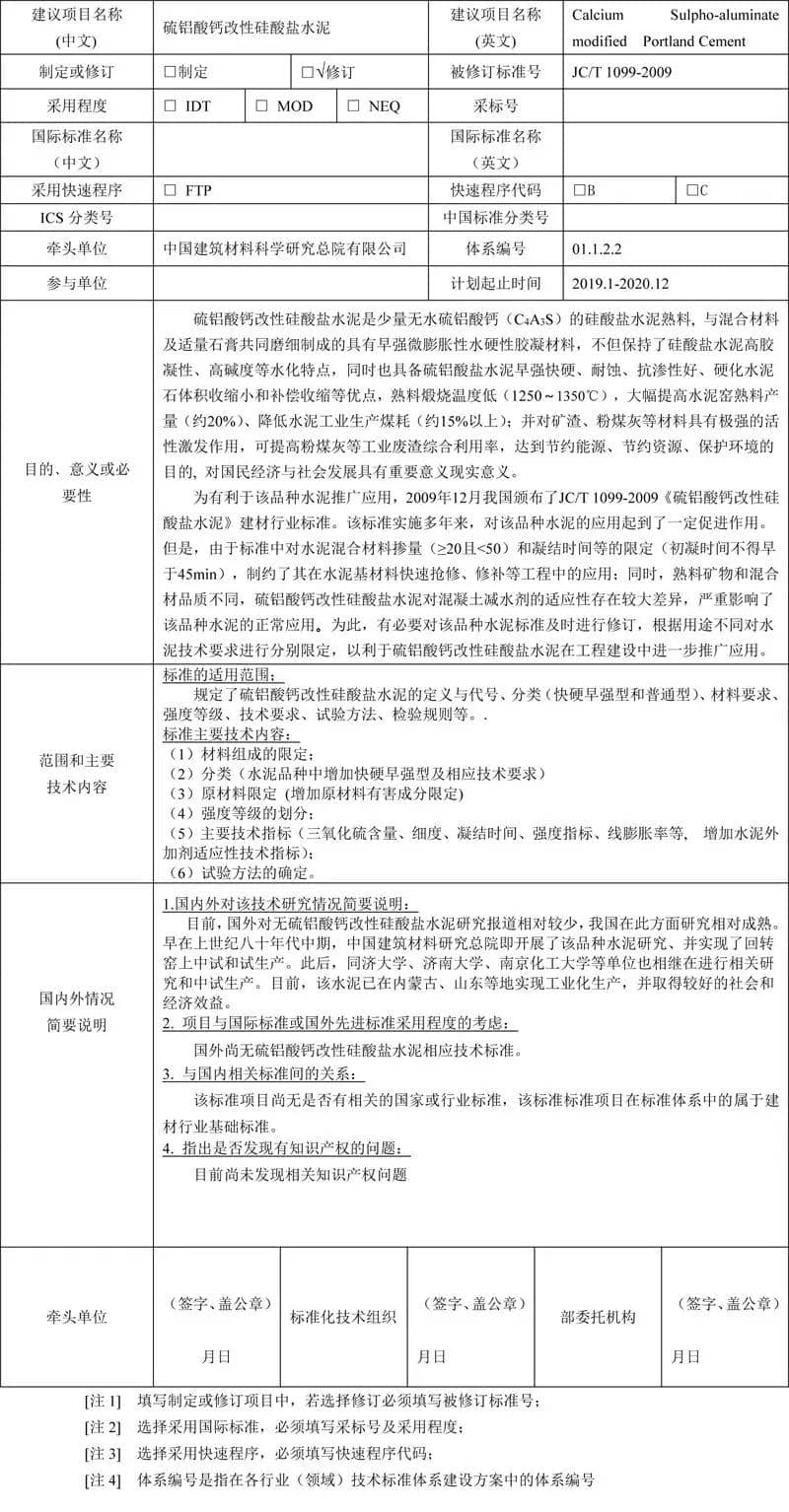 泥行業標準項目建議書