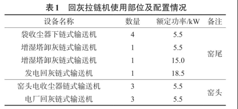 窯頭、窯尾及電站的收塵設(shè)備具有間斷性下料的特點(diǎn),其配套的拉鏈機(jī)回灰輸送雖然持續(xù),但有間隙性大流量的特點(diǎn)。電站的飛灰收塵灰量較少,拉鏈機(jī)的配置設(shè)計(jì)冗余較大。福建三明南方水泥13臺(tái)拉鏈機(jī)在生產(chǎn)時(shí)始終處于工頻運(yùn)行,運(yùn)行負(fù)荷低,磨損較大,特別是窯頭收塵器下的幾臺(tái)拉鏈機(jī),由于輸送的是熟料,磨損較大,加上較快的運(yùn)行速度,導(dǎo)致鏈條更換頻繁。