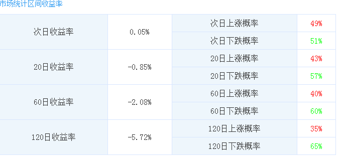統計2016年2月1日至2018年5月31日的全市場數據,東方財富Choice數據顯示,共有2741只個股有效突破年線9374次,其中4590次突破后次日股價上漲,4784次股價下跌,全市場次日平均收益率為0.05%。若將持有期拉長,一個月(20日)、三個月(60日)、六個月(120日)平均收益率分別為-0.85%、-2.08%、-5.72%。