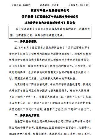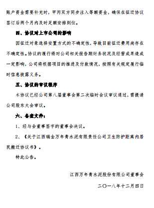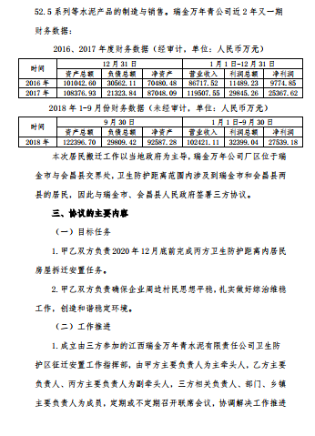 關于簽署《江西瑞金萬年青水泥有限責任公司衛生防護距離內居民搬遷協議書》的公告