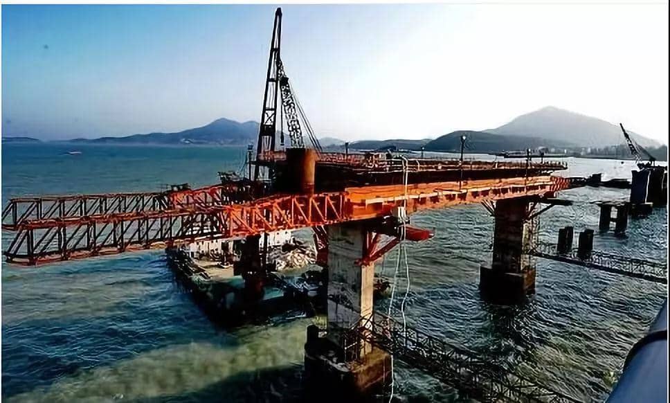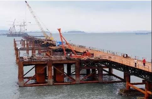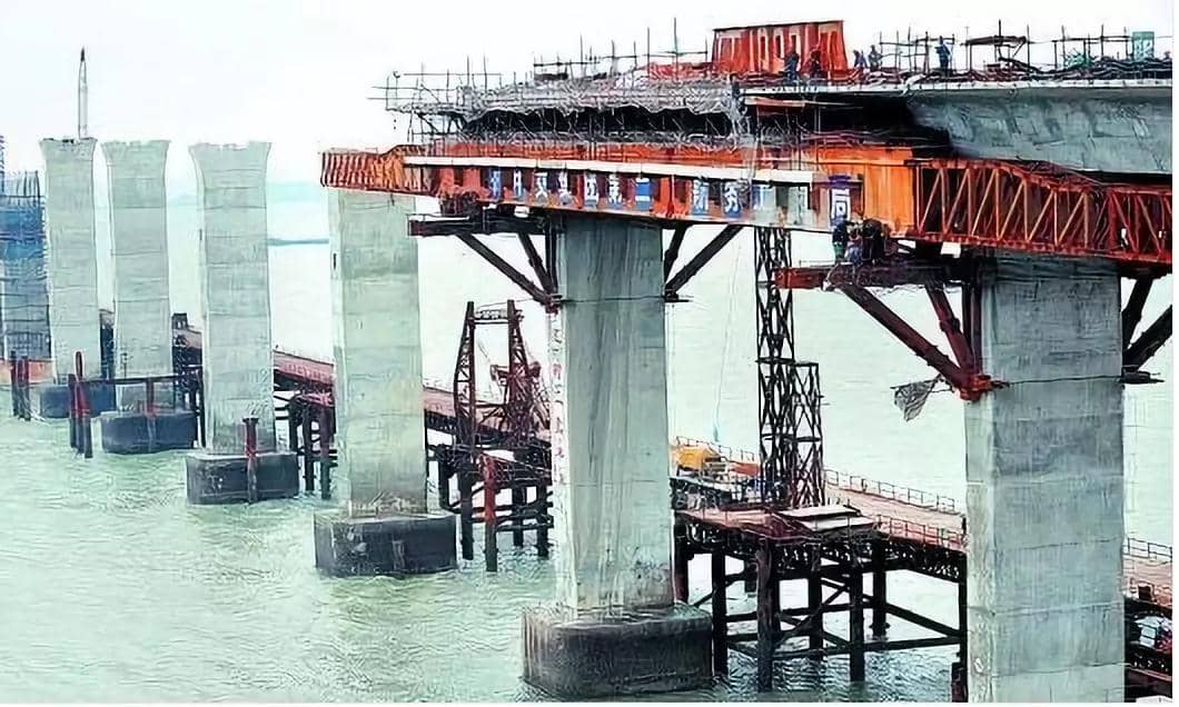 這座大橋最難的部分,也是也是部分深海的施工,所以在建造的時候,為了保證底部的質量,我們將240噸的水泥傾瀉到海水當中,為了保證最大的加固,我們在海底打入了上百根鋼柱,這些鋼柱加起來也有三十噸。