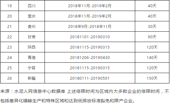 且大多數區域要在采暖季結束(3月中下旬)后才能恢復正常生產,甚至有區域錯峰停限產時間至2019年5月1日,長達7個月之久。