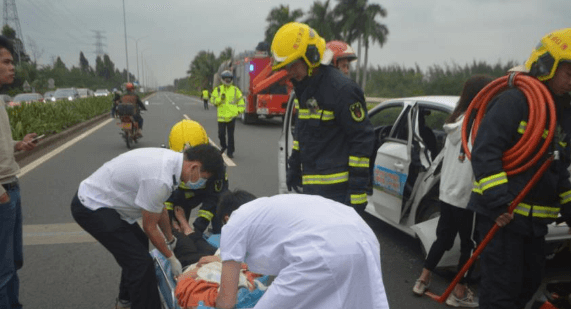 15時30分,消防員到達現場。此時發生事故的水泥車正靠邊停著,水泥車前面的一輛教練車,車尾碰撞痕跡明顯,車身變形。經了解,兩車是發生了追尾造成碰撞,教練車車廂后排位置有1名女子受重傷被困,無法動彈,120醫護人員也已經先給受傷女子進行輸液,而教練車上其余4人也受了輕傷,已自行下車等待救助。了解現場情況后,消防員迅速展開救援工作,利用液壓破拆工具組將車門打開,約10分鐘后,消防員將受重傷女子成功救出,并交由120醫護人員送往醫院進一步救治。