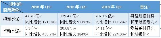 從2018年前三季度的整體業績來看,海螺水泥、華新水泥的業績呈現遞增態勢,并保持高速增長,建議投資者予以關注。