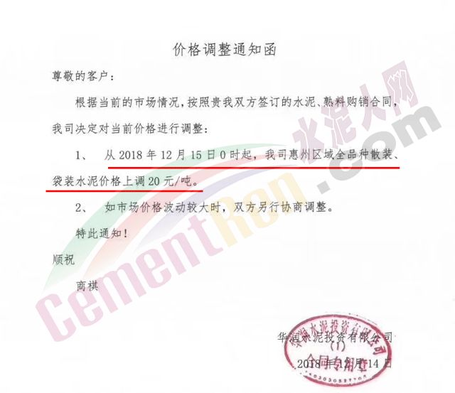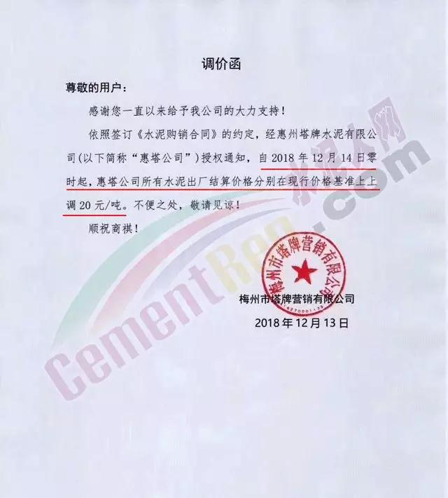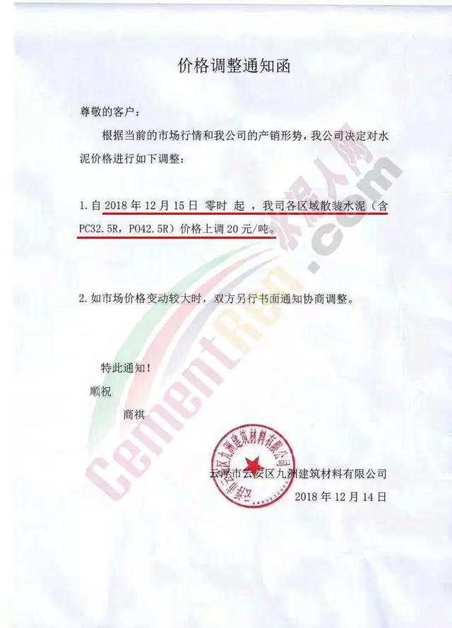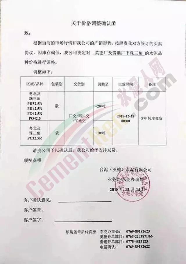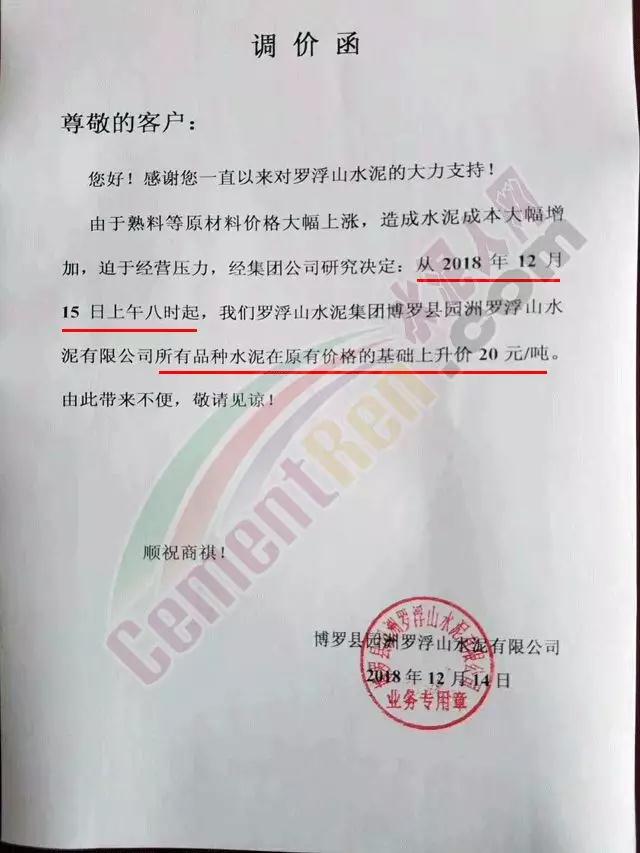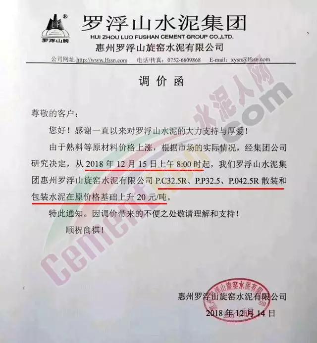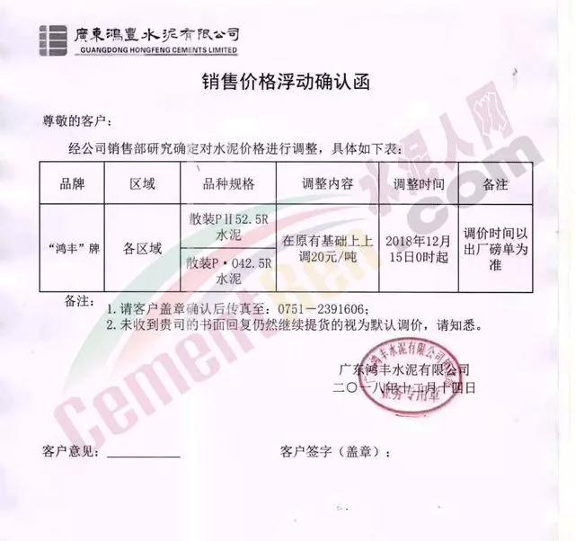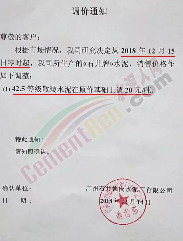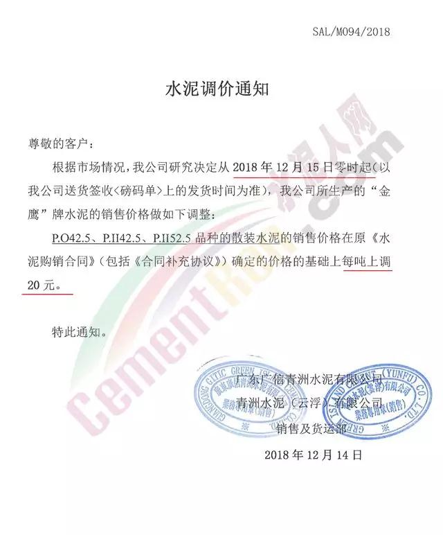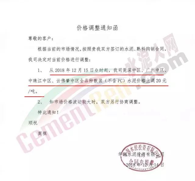 昨日(14日)廣東省珠三角區域多家企業集體發布漲價通知。一直以來在水泥經銷商中傳播的漲價消息終于落實到紙面上了。珠三角區域此前被漲價的緊張空氣籠罩著,各家水泥企業門庭若市,水泥排隊車日日爆滿。 昨日珠三角區域水泥企業陸續發布通知稱自今日(15日)起上調水泥價格,上調幅度20-30元/噸。調價通知稱因熟料等原材料價格上漲,同時各企業庫存偏低,故上調水泥價格,通知原文如下: 預計近兩日區域內其他企業也會陸續跟漲,屆時可能影響周邊區域水泥價格。某水泥經銷商表示,希望這次漲價后供應緊張的行情能稍稍得到緩解。