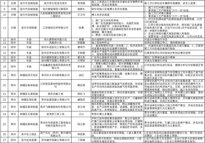 根據《關于開展秋冬季期間環境執法發現問題公開發布工作的通知》(蘇環辦〔2018〕461號)要求,現將12月份第二周我省秋冬季大氣污染防治交叉互查情況通報如下: