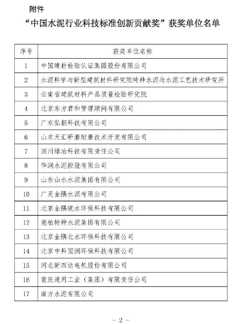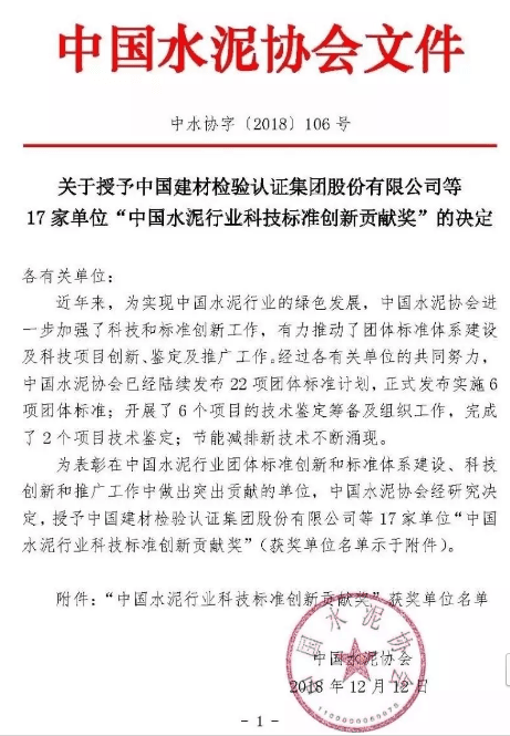 中國水泥協會為表彰中國水泥行業團體標準創新和標準體系建設、科技創新和推廣工作中做出突出貢獻的單位,舉辦了“中國水泥行業科技標準創新貢獻獎”評選活動,其中山東山水水泥,華潤水泥控股,南方水泥、廣靈金隅水泥、堯柏特種水泥等16家單位被授予“中國水泥行業科技標準創新貢獻獎”。 具體通知如下: