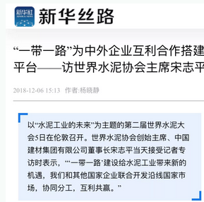 要想富,先修路。共建“一帶一路”,少不了水泥。然而,宋志平介紹說,在“一帶一路”的建設中,中國輸出的不僅是建材,而是從生產線、技術標準到實驗室、大賣場,再到物流、管理的全鏈條。