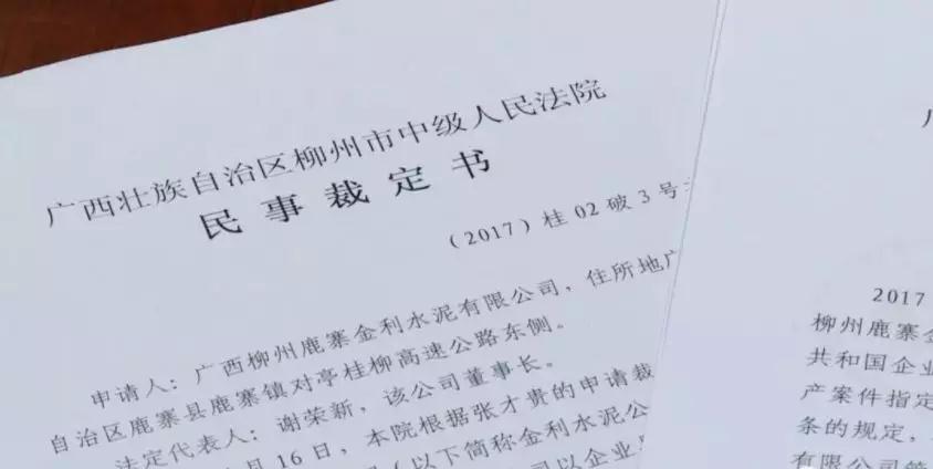 金利水泥廠原本是柳州市場占有率第二的老牌水泥生產企業,日產水泥3200噸,年產達150萬噸,年稅收約3500萬元。這樣一個水泥生產大戶,從2012年起卻麻煩不斷。金利公司實際控制人謝某高息向民間融資,因經營不善,導致公司債臺高筑,陷入多起債務糾紛,引發了系列訴訟。