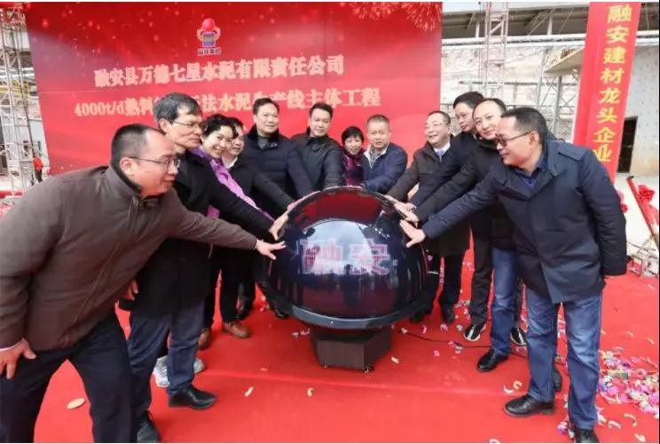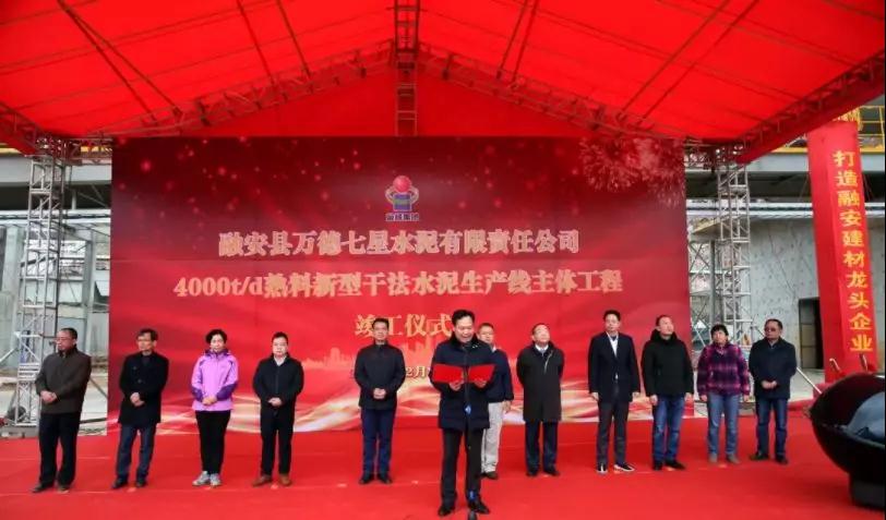 12月28日,融安縣萬德七星水泥有限責任公司舉行4000t/d熟料新型干法水泥生產線主體工程竣工儀式現場。