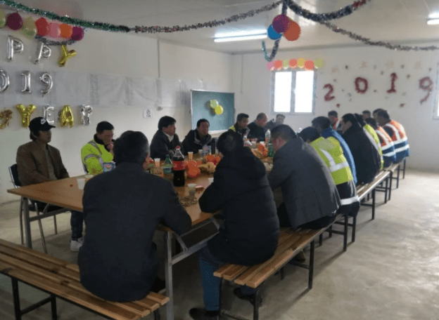 本著工作生活兩不誤的原則,在這辭舊迎新的日子里,項目部為大家準備了豐盛的晚餐。為表達對項目部努力的認可,總包方蒂森克虜伯派了十幾名代表到項目部來和戰友們暢飲,并準備了作為穆斯林國家最高禮遇的烤全羊,邀請項目部員工到他們的營區歡度佳節,迎接2019年新年。在餐會上,蒂森克虜伯的土建經理法蒂先生一再表示對項目部的認可,并提出在未來的項目上希望還能繼續跟中國二十冶合作,再創輝煌。