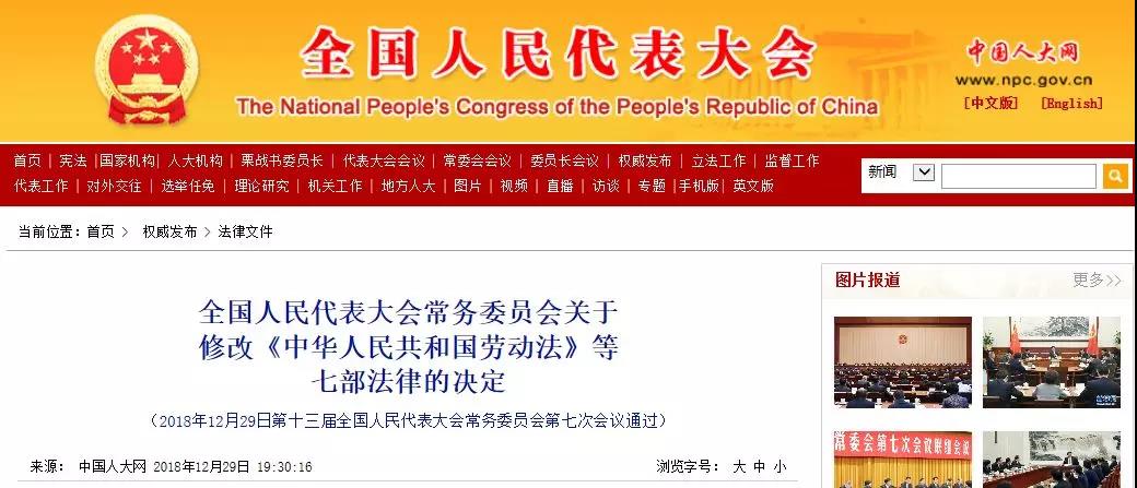 2018年12月29日根據中國人大網消息,第十三屆全國人民代表大會常務委員會第七次會議決定,對《中華人民共和國環境影響評價法》作出修改: