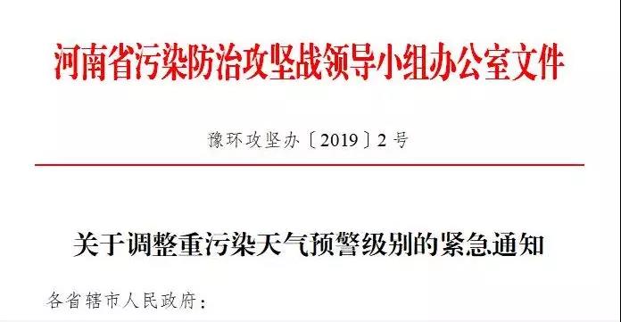 為加強聯防聯控,減輕區域重度污染程度及縮短持續時間,保護人民群眾身體健康,省污染防治攻堅辦研究決定:請鄭州、開封、平頂山、安陽、濮陽、許昌、漯河、三門峽、周口、駐馬店、南陽、濟源12市于1月4日18時升級為重污染天氣紅色預警及Ⅰ級響應,其他6市繼續實行重污染天氣橙色預警及Ⅱ級響應。