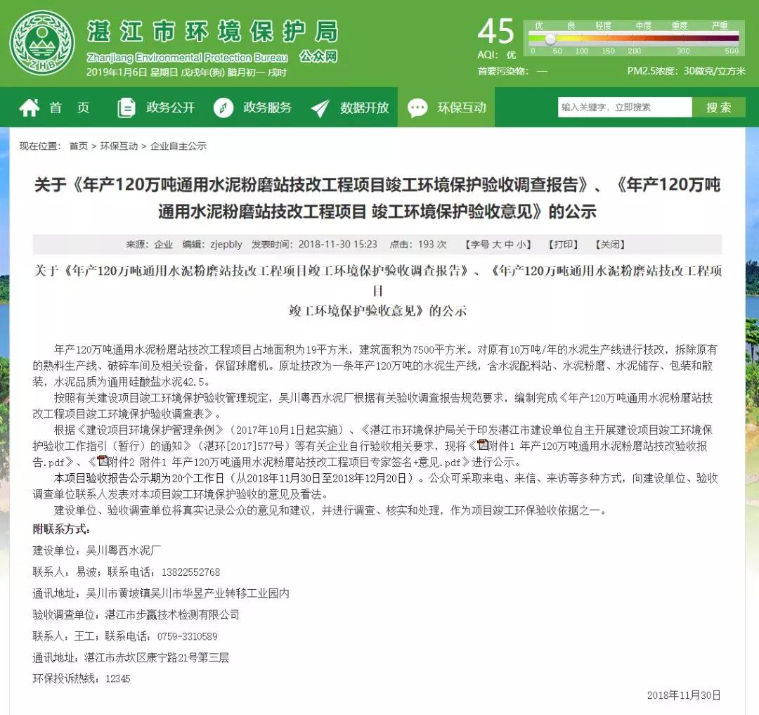 據(jù)查詢,吳川市粵西水泥廠于1990年03月05日在吳川市工商行政管理局注冊(cè)成立。此前,湛江市環(huán)境保護(hù)局官網(wǎng)曾發(fā)布關(guān)于《年產(chǎn)120萬(wàn)噸通用水泥粉磨站技改工程項(xiàng)目竣工環(huán)境保護(hù)驗(yàn)收調(diào)查報(bào)告》、《年產(chǎn)120萬(wàn)噸通用水泥粉磨站技改工程項(xiàng)目 竣工環(huán)境保護(hù)驗(yàn)收意見(jiàn)》的公示文件。