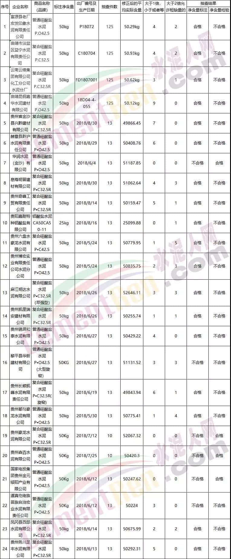 2018年水泥強度不合格企業名單