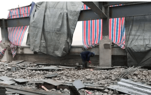 T2樓共18層,18層樓梯間一片雜亂,樓梯臺階的鋼架從水泥里裸露變形,很容易絆腳,樓頂上一片廢墟,有工人正在施工,滿地都是拆掉的水泥塊和鋼材木材,空中還能看到部分房頂的鋼架,樓頂四周遮擋有塑料布。問及工期何時結束,現場工人說“還早著呢”。記者站在T2樓18層樓梯間,噪音巨大,兩人面對面正常音量說話完全聽不見對方,進入辦公區域仍可聽到轟隆隆的噪音。