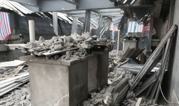 雁展路萊安中心T2樓每天白天拆除樓頂加蓋違建,在此辦公的租戶說,“噪音吵得人都耳鳴了”。