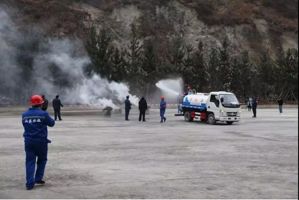 本次應急演練分別為“原煤堆場煤炭發生自燃”“廢機油發生意外泄漏”“水泥磨收塵器突然出現故障冒灰”三個內容。
