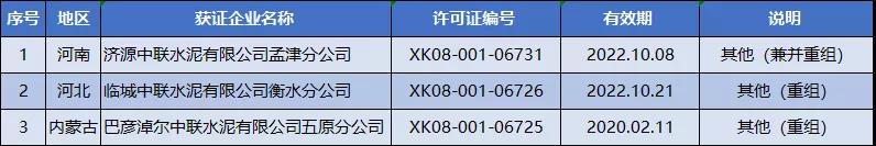 上述三家中聯水泥公司均為水泥粉磨站企業,生產許可證信息如下: