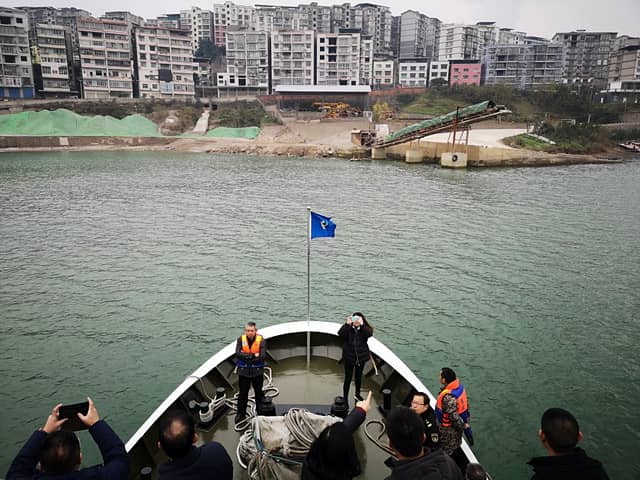 2019年1月8日,生態環境部現場核查組對重慶市萬州區新田集鎮碼頭砂石侵占岸線問題整改情況進行現場核查。攝影/章軻