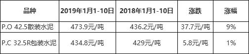 國家統計局流通領域重要生產資料市場價格變動情況數據顯示本期,P.O 42.5散裝水泥水泥均價較上年上漲37.7元/噸,漲幅達9%。P.C 32.5R包裝水泥上漲5.8元,漲幅1%,與上年基本持平。