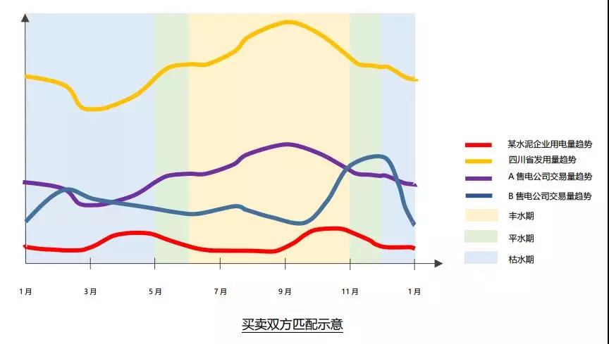 假設某水泥企業需在A、B兩家售電公司選擇一家進行合作。從上圖中可以看出,雖然B售電公司的交易量趨勢與該水泥企業用電趨勢較為符合,但A售電公司交易趨勢更符合市場波動。因此,A公司的成本均價應低于B公司的成本均價。如果A、B售電公司服務質量相同,則A售電公司存在更大議價空間;如果A、B售電公司價格相同,則A公司又更充足的利潤空間來提供穩定的、高質量的服務。