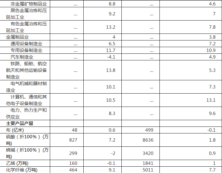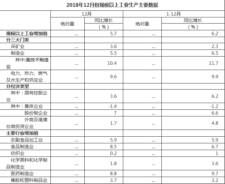 2018年12月份規(guī)模以上工業(yè)生產(chǎn)主要數(shù)據(jù)
