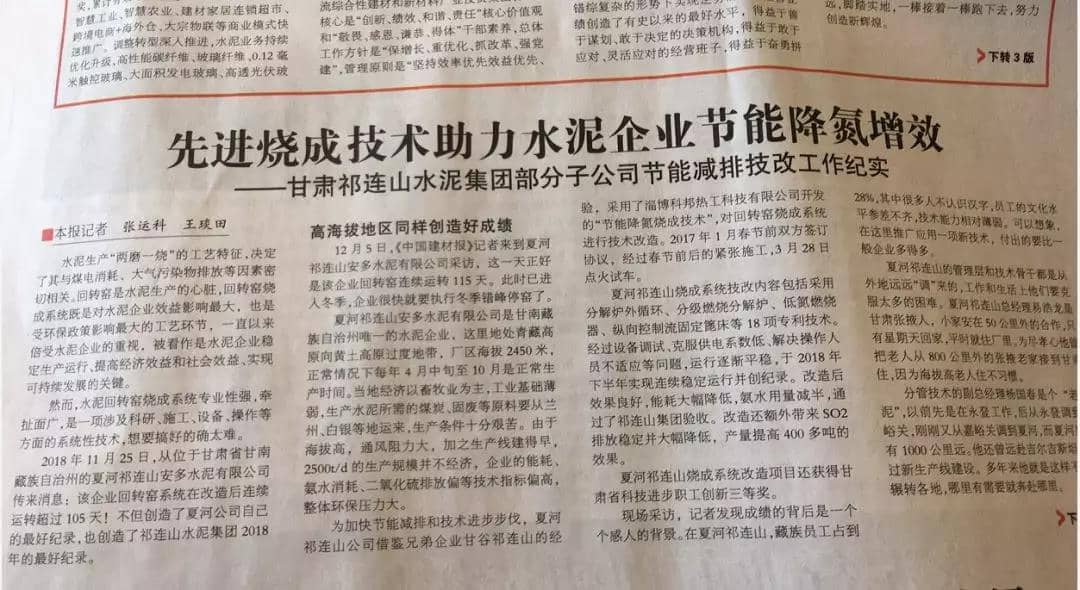 甘肅祁連山水泥集團股份有限公司作為大型央企、中國建材集團旗下企業,同時也是西部地區和甘肅省水泥行業的領頭羊,多年來積極踐行科學發展觀,打造資源節約型、環境友好型企業,主動淘汰高耗能落后水泥生產線,加大對固體廢棄物綜合利用,促進了企業由耗能型向節能型轉化升級;同時積極采用新技術新工藝,升級技術裝備,不斷引領行業先進生產工藝水平,節能減排成績斐然,為西部地區和甘肅省的經濟發展、環境保護做出了突出貢獻。祁連山水泥集團旗下夏河、甘谷、隴南三家企業正是這方面的典型代表,這也表明祁連山水泥高層領導著眼長遠,對企業技術進步充滿緊迫感的戰略眼光。