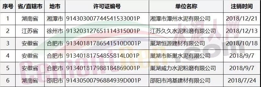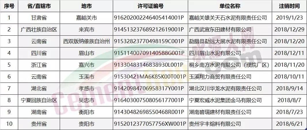 據查詢,迄今為止共有16家水泥制造企業排污許可證被注銷。其中注銷原因為排污單位被依法終止不再排放污染物的共6家企業;注銷原因應當注銷的其他情形的共10家企業。