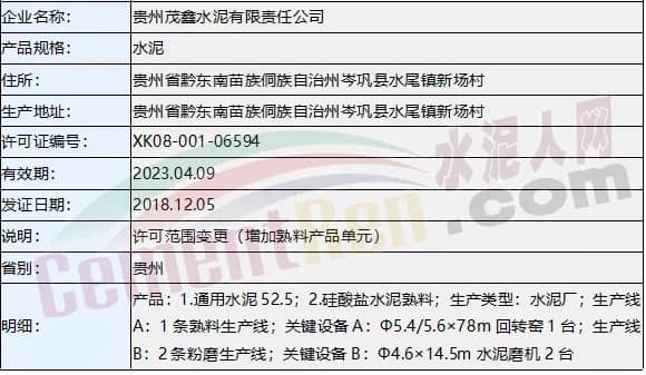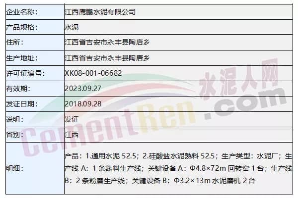 從質檢部局生產許可主辦公室相關數據可見,貴州茂鑫水泥有限責任公司,已經在2018年12月初取得了生產許可證。江西鷹鵬水泥有限公司已經在2018年九月下旬取得了生產許可證。云南景谷紅獅水泥也進入了建設新階段。雖倍受爭議,雖幾經風波但終歸獲得認可。尤其是永州紅獅在湖南區域成為家喻戶曉的知名企業。